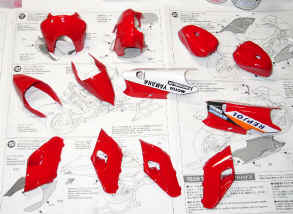 各カウリングの裏側塗装。今回は指定色であるTS−49ブライトレッドを採用 |