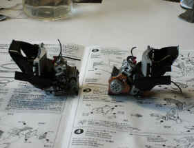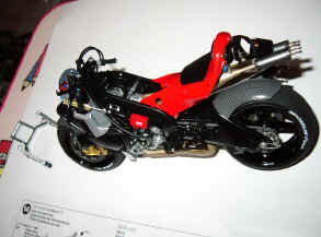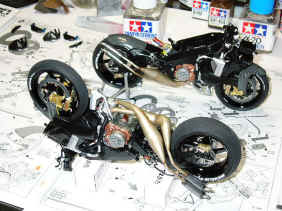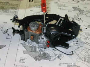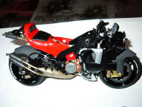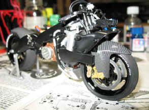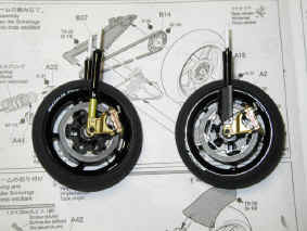 以上で製作日記の報告を終わりますが、製作途中のハプニングを一つ紹介しますと、Rrブレーキキャリパの子部品をピンセットで摘まんだ際パチーンと弾けてしまい、その部品を探すのに一苦労しなかなか見つからなかった時は、これは自作しなければならないか?とまで考えてしまいました。そんなこんなで四苦八苦している時、探し物上手の娘が現れいとも簡単に発見してくれたのでした。弾けてから発見されるまで約2時間! 今では何事も無かったかのように、Rrブレーキホースがその子部品に収まっています・・・。