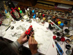 各カウリングをランナーより切り離し成型、上塗り塗装1回目及び2回目 |