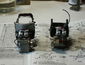 水冷2ストローク2軸クランクV型4気筒エンジン塗装組み付け完了状態 |