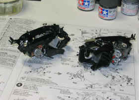 いよいよチャンバーの組み立て。分割部品を組み付け、下地としてTS−30を塗装 |