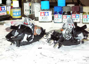 フューエルタンク下部塗装し、アンダーカウルにデカールの貼り付け |