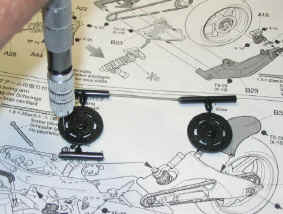 左右分割のフューエルタンクを接着し、ブリーザパイプのホールを加工(キットには無) |
